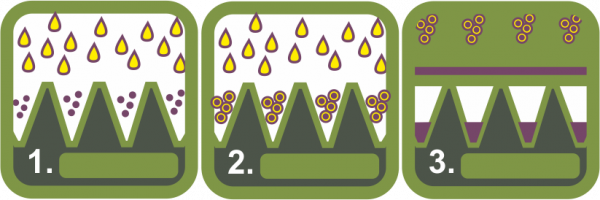 Drobné částečky nečistot jsou speciální látkou uzavřeny do kapslí, jsou odlehčeny od povrchu a snadno zachyceny a odstraněny speciální utěrkou.